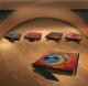For that reason, before the varnishing of the aluminium, carried out using exclusively atoxic powder varnishing, we make a chromic conversion pre-treatment, that consist in depositing an extra protective covering into the profiles. This process gives to the coloured aluminium an excellent and lasting resistance to atmospheric agents.[...] Details...  As each sculpture created in the Peotta Laboratory is hand made, it maintains its individual character. Tradition and experience are characteristic elements that appear in every gesture of the sculptor throughout every stage of the sculpture. The uniqueness of each creation appears during each working phase of the sculpture.[...] Details...  The base has been made of polished and anodised alumiĀnium casting, the stand made of curved stainless steel, supĀports a lamp head made of a carbon fibre arc. The light source is provided by a 50 W halogen bulb. The ignition system, positioned in the base is composed by infrared led, makes possible to turn on the light with two different intensities thanks to the only passage of the hand.[...] Details...  coffee table with wooden base covered with printed leather, top in tempered fused glass with hollow decorated by hand. Size: 96 x 96 x h.36[...] Details...  decoration panel with wood and cord details decorated by hand . Size: 80 x 170[...] Details...  lamp with wooden base and structure covered with hand-painted "non-woven fabric" and metal decorations. Size: 35 x 45 x h.165[...] Details...